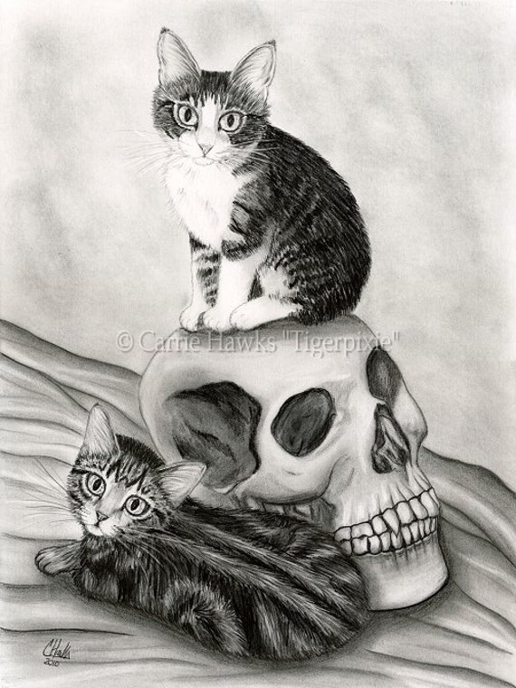 Witch S Cat Art Cat Drawing Tabby Kittens Cats Skull Etsy Uk